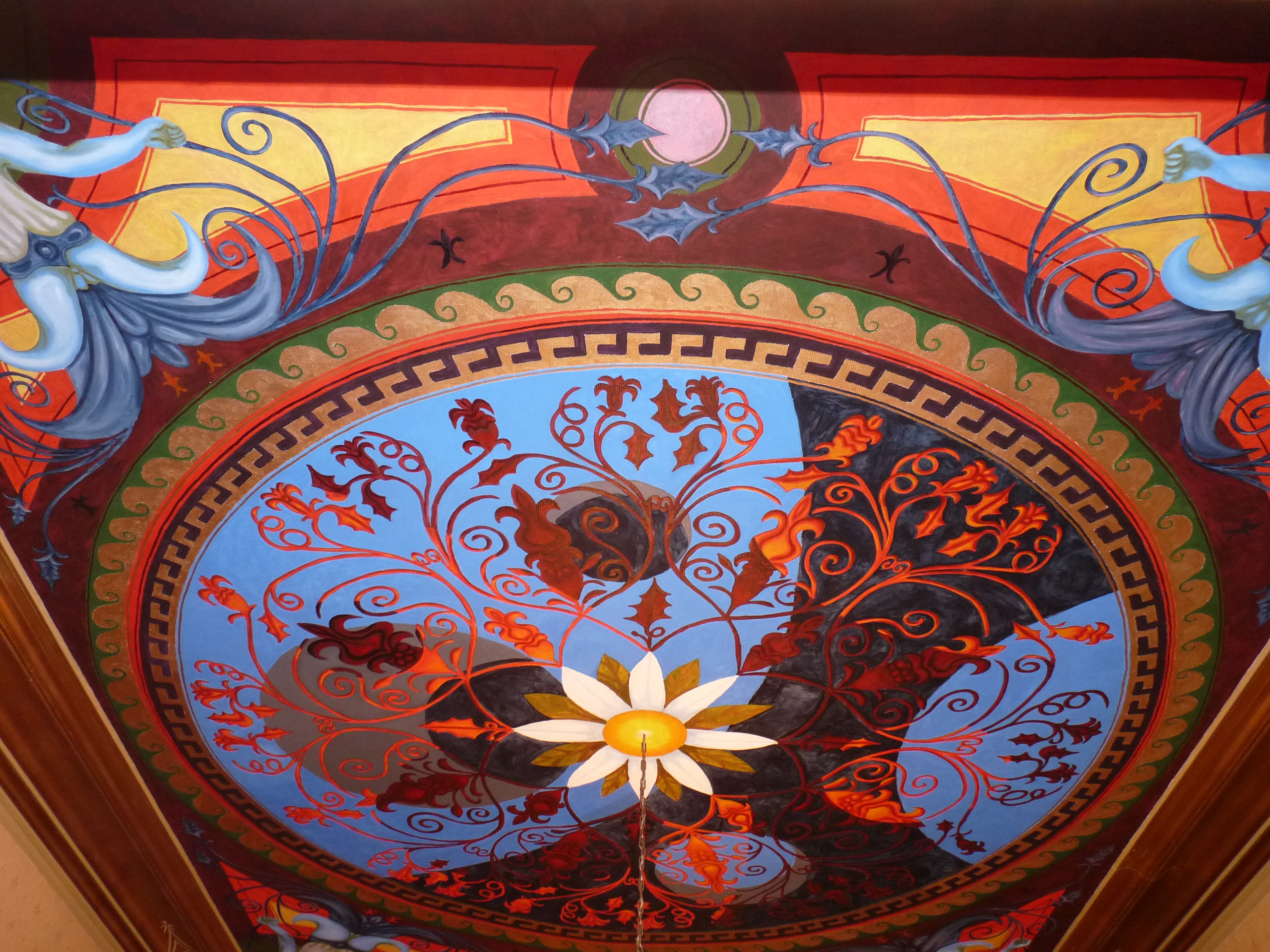En revanche, l’atelier de l’artiste et la demeure sont uniquement accessibles sur rendez-vous et aux hôtes des lieux. Les plus chanceux découvriront le salon et la salle à manger, où sont accrochés des tableaux colorés aux étranges personnages. En levant la tête, ils observeront une immense fresque dans une des pièces. Elle est peinte au plafond sous lequel les propriétaires se sustentent une fois le calme revenu. Colorée à souhait, l’œuvre originale impressionne par sa démesure et ses riches détails.