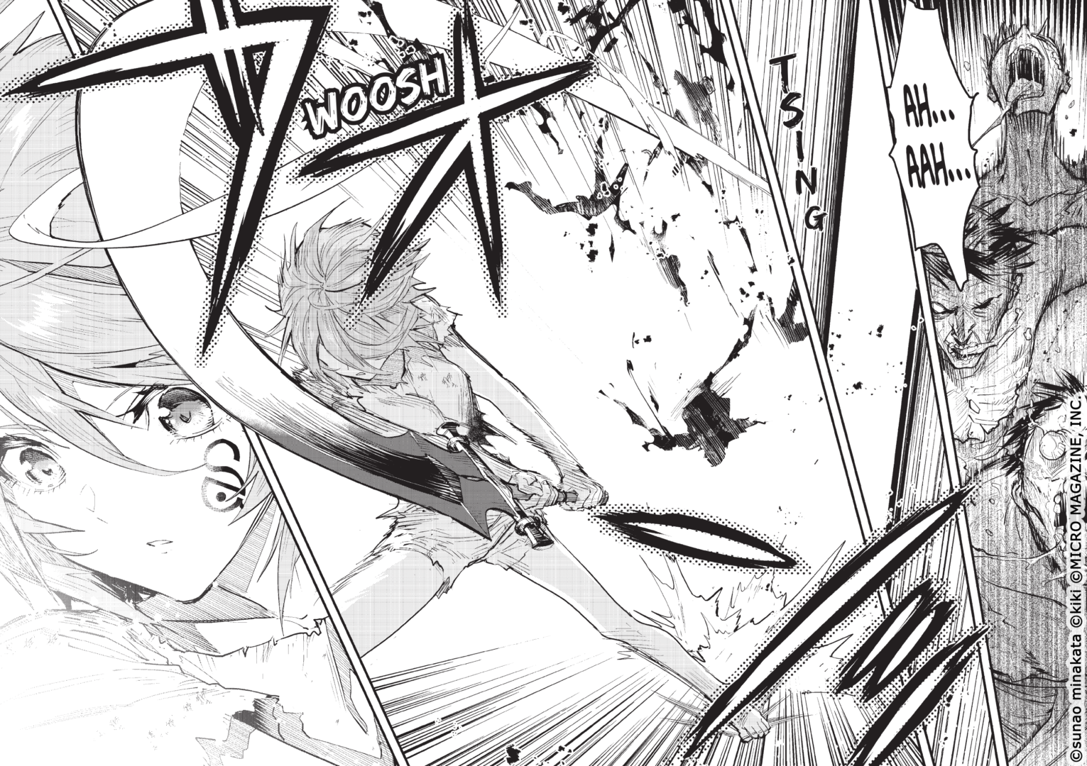 Comment partir à l’aventure si on n’a aucun pouvoir ? C’est le triste destin de Flamme Abricot qui se retrouve vendue en tant qu’esclave. Une épopée épique et touchante se dresse alors devant nous où Flamme évolue petit à petit, aux côtés de sa nouvelle partenaire Milkitte. Son expérience et ses durs labeurs vont pousser sa motivation à vaincre et son envie de se surpasser ! Des loups-garous qui se fusionnent, des ogres à tête de tourbillon, les démons qui semblent attachés à Flamme… Le mystère plane sur ce monde et cette quête contre le Roi Démon n’a l’air que d’une mascarade. Les deux premiers tomes nous jettent dans le bain, un bain ensanglanté, tel un raz de marée violent. Mais le manga semble aussi apporté un côté plus léger à son récit, avec des scènes poignantes, pleines de candeur. Ce mélange étrange retranscrit parfaitement l’état de nos deux héroïnes qui doivent réapprendre à tisser des liens dans un monde impitoyable. Roll over and die, c’est une aventure fantastique avec des personnages hauts en couleur et une intrigue passionnante.