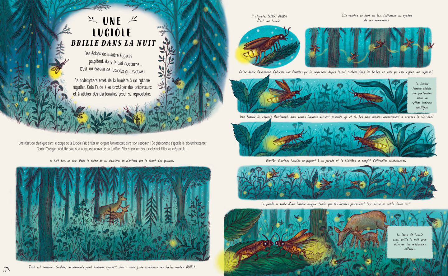 Et si nous prenions le temps d’observer toutes les merveilles et les secrets que recèle la nature ? Une fourmi construit son nid, une abeille fabrique du miel, un champignon s’épanouit… Autant de petits miracles à découvrir au fil des pages.