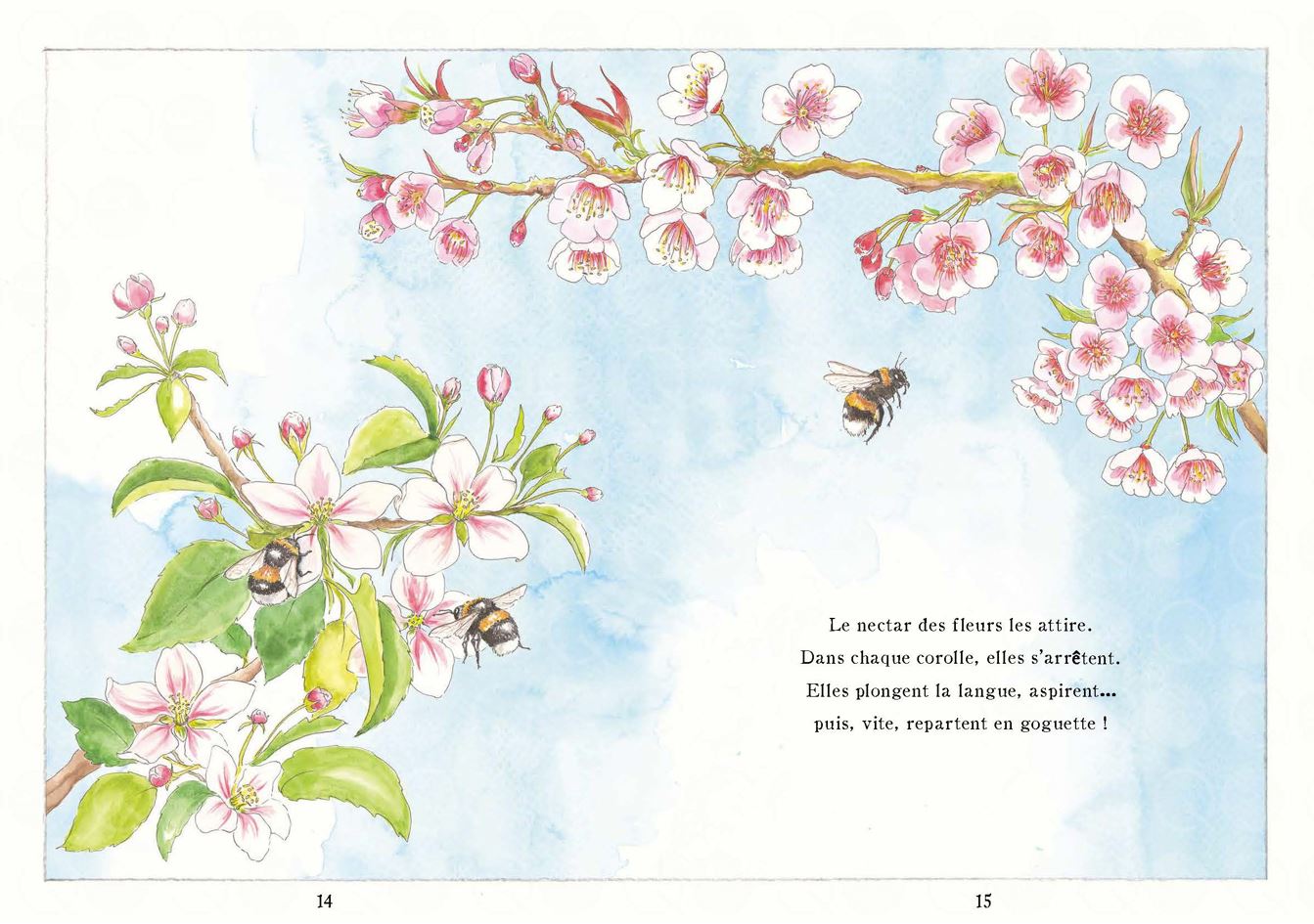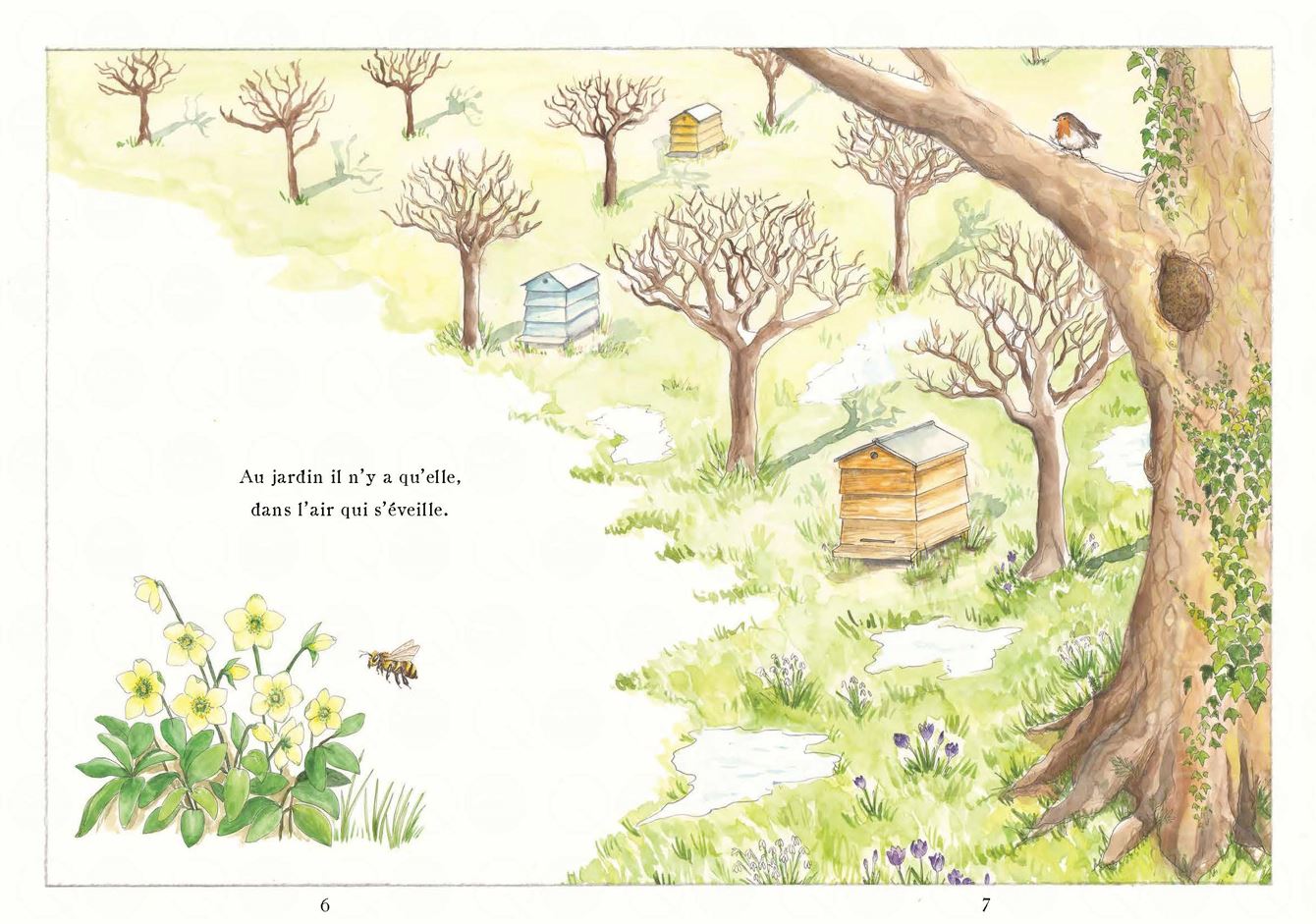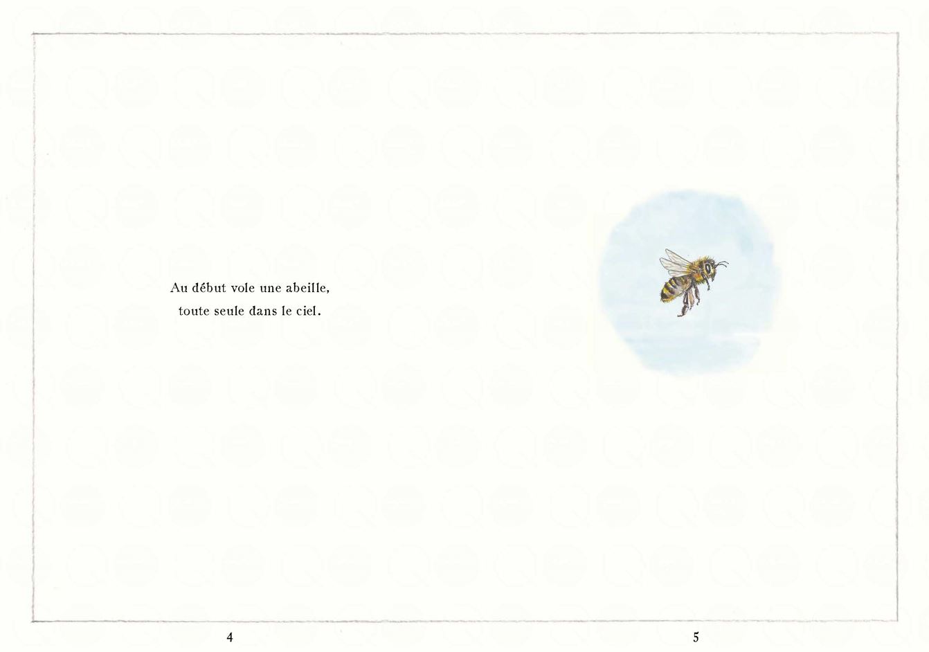 « Au début vole une abeille, toute seule dans le ciel… » L’air est chargé de délicieux parfums. L’abeille s’envole, le printemps l’appelle ! Bientôt elle sera suivie, par toutes ses amies !