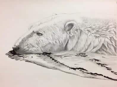 Peintre et dessinateur animalier, Adeline Terpo travaille principalement la mine et les poudre graphites, sur papier et sur toile. Les thèmes qu’elle aborde sont souvent liés au milieu marin, les espèces qui en dépendent, les jeux d’eau et de lumière. Ses dernières réalisations jouent des caustiques et des bulles, l’eau, l’air et la lumière où la baleine devient un sujet de prédilection, c’est un animal totem et un porte-drapeau d’un environnement à l’agonie.