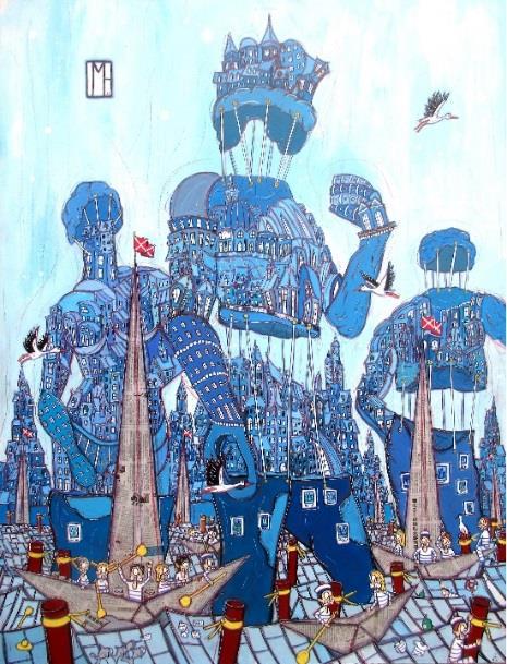 Si Nicole PFUND et Gilles BONNIN exposent ensemble ça n’est pas un hasard. Leur rencontre a certainement eu lieu dans la dimension parallèle et onirique de la création artistique, et leurs univers poétiques offrent de bien émouvantes similitudes. Par son dessin et le choix précis de sa matière colorée, Nicole PFUND nous donne à voir et à entendre la symphonie de l’humaine destinée. On n’est pas surpris alors de retrouver ce qui fait la force des sculptures de Gilles BONNIN, le pouvoir évocateur de ses bateaux faits de terre, galets et acier, arches probables où de drôles d’oiseaux se posent malicieux.