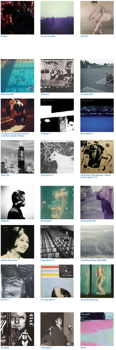 Alex Zhang Hungtai (né à Taipei), alias Dirty Beaches, revient avec son meilleur. Album conçu après une douloureuse rupture amoureuse. L’ambiance psychotique est assez malsaine malgré une joie infra-vitale qui se dégage en pulsations puissamment anémiées. Avec Love is the Devil Dirty Beaches – Drifters souffle un chaud-froid continu qui s’entoure et se déroule comme l’être phantasme des Aborigènes : le serpent Arc-en-Ciel, mais en noir et blanc. Une esthétique sauvage fait le charme de ce double album à double ambiance.