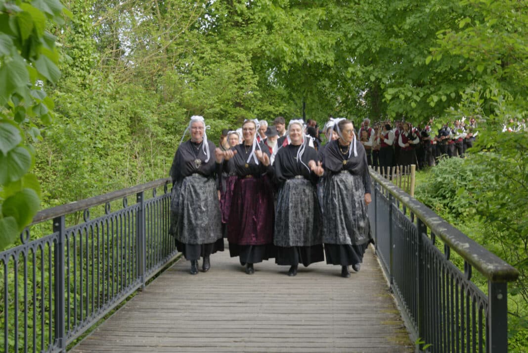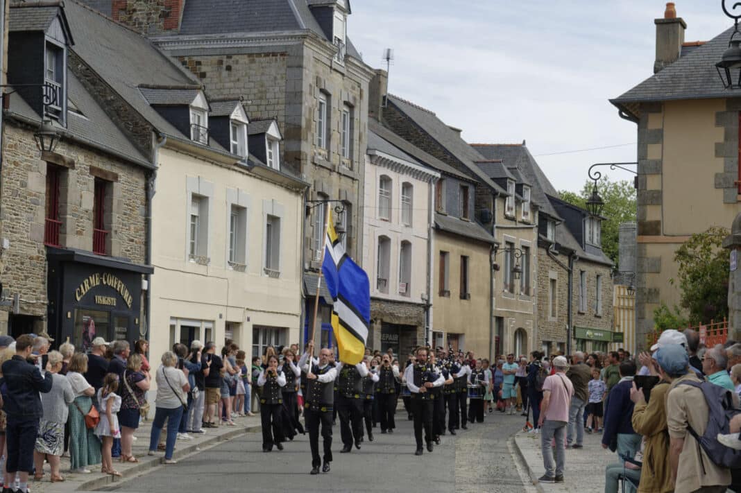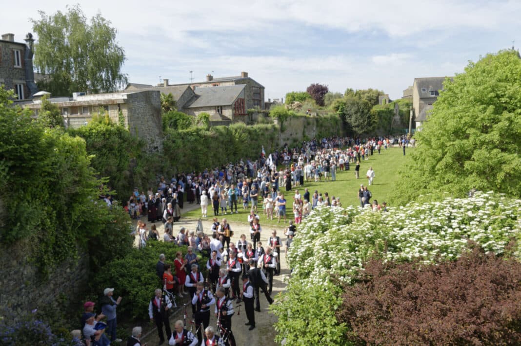 La journée s’est terminée par le traditionnel Triomphe des Sonneurs, qui a défilé depuis la place Chateaubriand, en passant par les jardins et les douves — cette fois dans le sens inverse du matin — pour s’achever en apothéose sur le parvis de la cathédrale Saint-Samson.