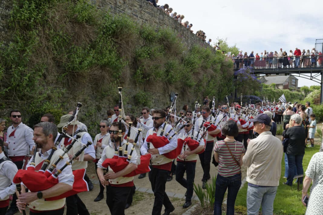 Les festivités ont débuté dès le matin par un grand défilé au départ de la cathédrale Saint-Samson. Les Bagadoù ont ensuite emprunté les jardins des douves sous les remparts, un cadre de verdure exceptionnel. Tout au long du parcours les menant jusqu’à la place Chateaubriand, ils ont interprété pour un public nombreux des airs de musique traditionnelle. Le Bagad de Dol-de-Bretagne a clôturé le défilé.