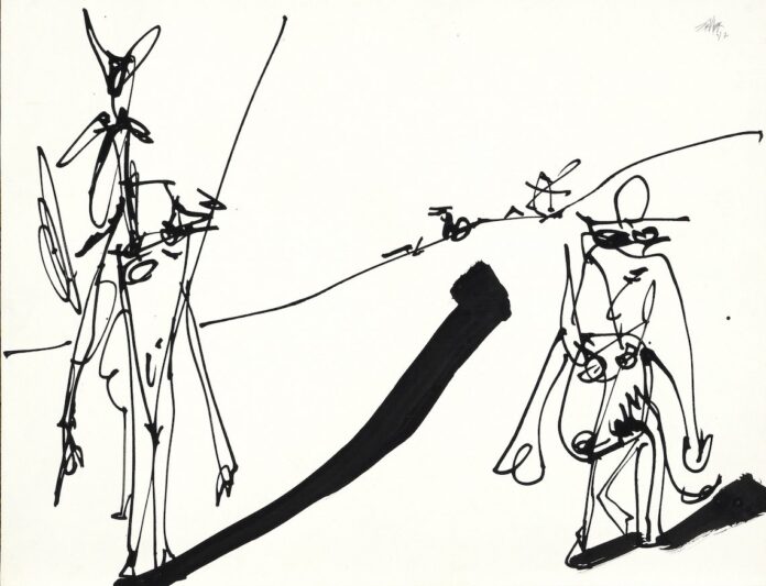 Antonio Saura qui fut l’un des principaux représentants de l’expressionnisme abstrait espagnol s’attaqua en 1987 à cette épreuve comme s’il s’apprêtait à livrer un « combat d’escrime graphologique », pour reprendre l’expression de sa fille Marina.