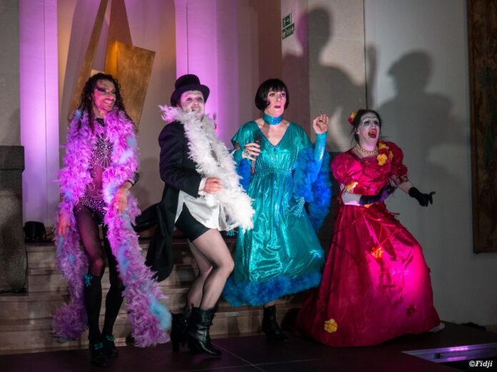 En chapeau et boa, maquillé comme un vélo volé, avec une diction quelque part entre Olivier Saladin des Deschiens et Geneviève de Fontenay, le présentateur de la revue cabaret DRAG fait le bilan d’une année mouvementée. Des spectacles au musée des Beaux-Arts, à la salle de la Cité, et même place de la mairie, « ah c’était sympatoche ! », commente le comédien qui a lancé le collectif de la DRAG en 2018. Pour cet habitué des planches de théâtre aussi bien que des zincs de bistrots, c’est le résultat d’un cheminement personnel dans les contre-allées de l’art dramatique, toujours guidé par une double intention : jouer et se marrer.