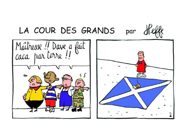 « Nous sommes mieux ensemble » – considérait lundi dernier à Aberdeen le Premier ministre, David Cameron. Dans un climat quelque peu tendu et émaillé de résultats contradictoires, il a indiqué sous forme de menace voilée que si « Si l’Écosse vote oui à l’indépendance, le Royaume-Uni éclatera, et nos chemins se sépareront pour toujours », « cela voudrait dire que nous ne partagerions plus la même monnaie, que les forces armées que nous avons bâties ensemble au cours des siècles se sépareraient ». En pratique, de nombreux Écossais considèrent qu’entre leur histoire et leur identité, leurs ressources halieutiques et pétrolières, et un attachement plus marqué à l’Europe que leurs voisins anglais, leur destin gagnerait à se faire désormais en toute indépendance. De fait, (et malgré un certain manque de reconnaissance de la part de l’Angleterre) l’Europe (puis les activités de la City) a été un important vecteur de sortie de pauvreté de la Grande-Bretagne dans les années 80-90. De nombreux Écossais indépendantistes sont prêts à renforcer des liens avec l’Europe qu’ils apprécient grandement, notamment car elle est à l’origine de nombreuses infrastructures (notamment routières) qui sont venues enrichir le territoire. Conséquence logique de la balkanisation de l’empire (et de Cameron dont le nom pourrait rester associé à ce tournant historique) : le Royaume-Uni sortirait de l’Union européenne lors du référendum de 2017. Côté français, le statut de 5e puissance économique du monde et seule puissance nucléaire indépendante européenne s’en trouverait renforcé.