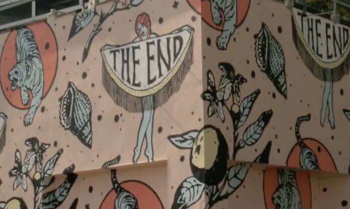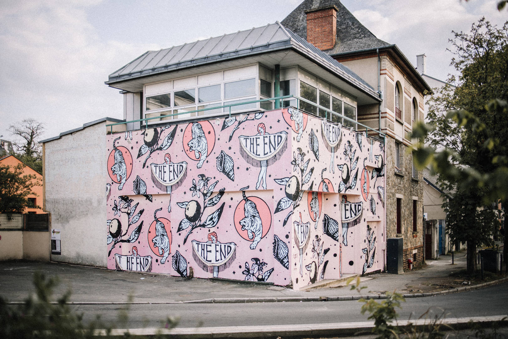 The End, une œuvre colorée signée Érik Elgé, artiste street art rennais, est à découvrir au 50 bis Boulevard de Chézy à Rennes. Il s’agit d’un oeuvre décorative éphémère créée en collaboration avec Wunder architectes qui ce week-end rendait ainsi hommage à l’immeuble qui accueillera leurs futurs bureaux.