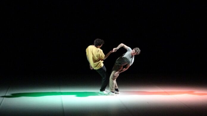 Et de se tenir la main ne fait pas exception. Il participe à mettre en lumière ce qui nous met en lien les uns des autres. À l’origine, l’idée du spectacle et son montage interviennent avant le Covid. Cet événement est venu modifier l’approche du projet dans la mesure où l’idée du touché et du contact n’était plus du tout appréhendée de la même manière. Mélanie Perrier remarque que les règles sanitaires de distanciation et d’isolation ont gravés les corps qui gardent en mémoire ces traumatismes. « L’acte de prendre la main de son voisin s’avère encore être compliqué et fait toujours l’objet d’un mouvement de réticence ». Cette nouvelle dimension s’ajoute à la volonté initiale de représenter deux hommes qui se tiennent la main pour apaiser la perception de ce geste par la société.