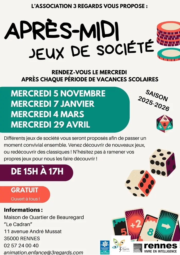Après-midi jeux de société au Cadran Le Cadran Rennes mercredi 29 avril 2026.