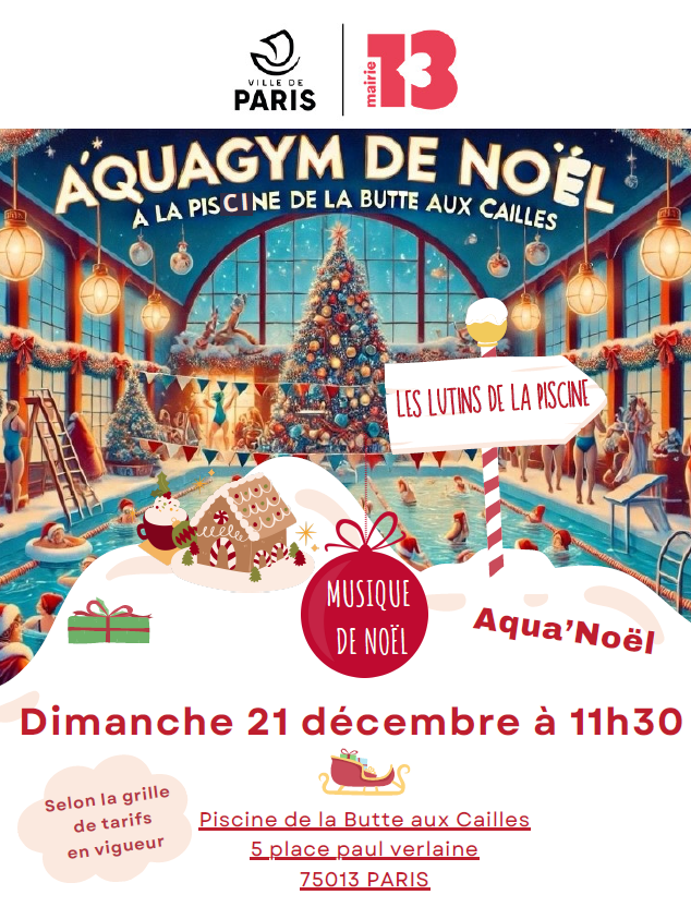 La piscine Buttes aux Cailles vous invite le dimanche 21 décembre à 11h30 à une spéciale aquagym de Noël.
