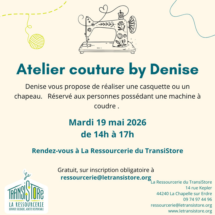 Atelier couture by Denise La Ressourcerie du TransiStore La Chapelle-sur-Erdre mardi 19 mai 2026.