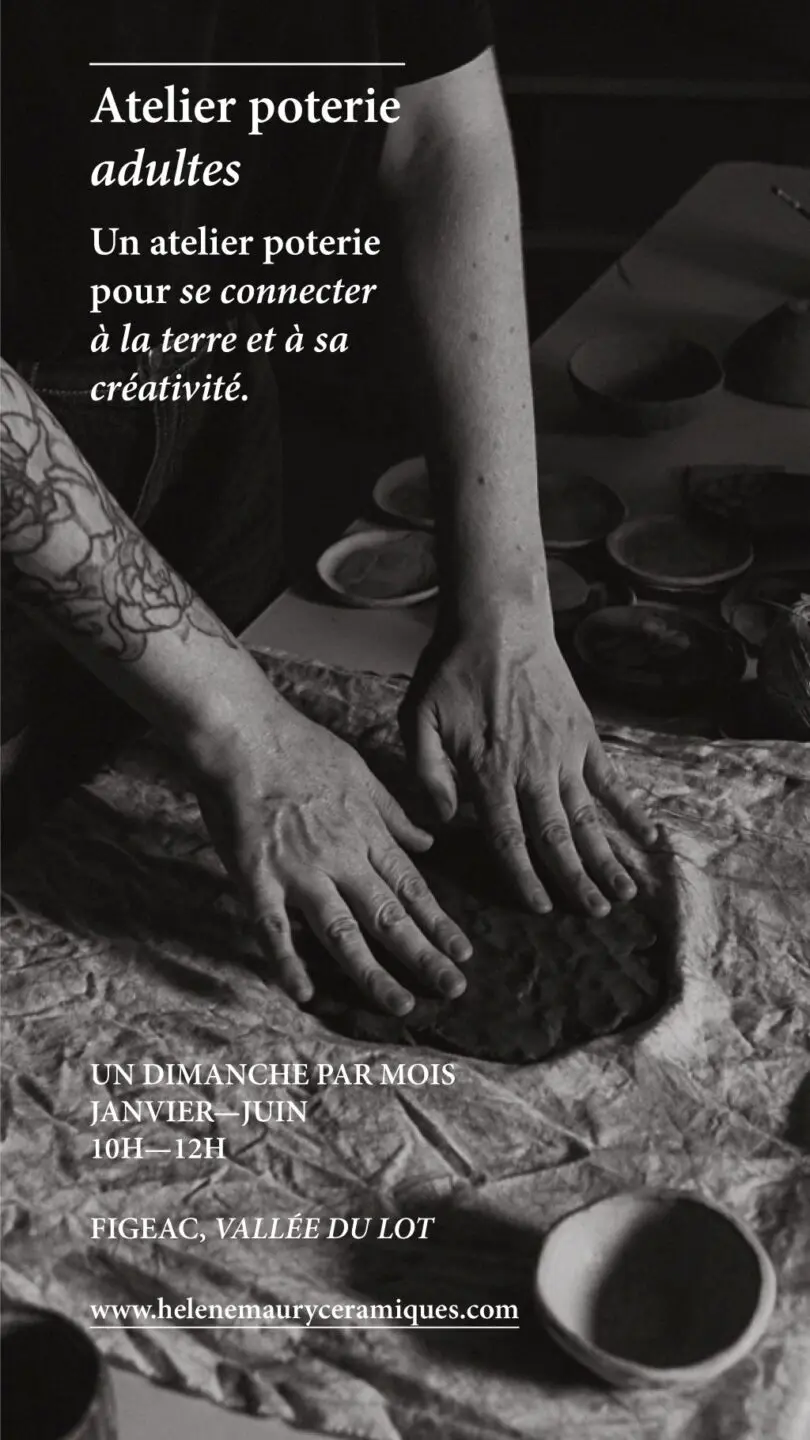 Atelier poterie adulte à Figeac Figeac dimanche 26 avril 2026.