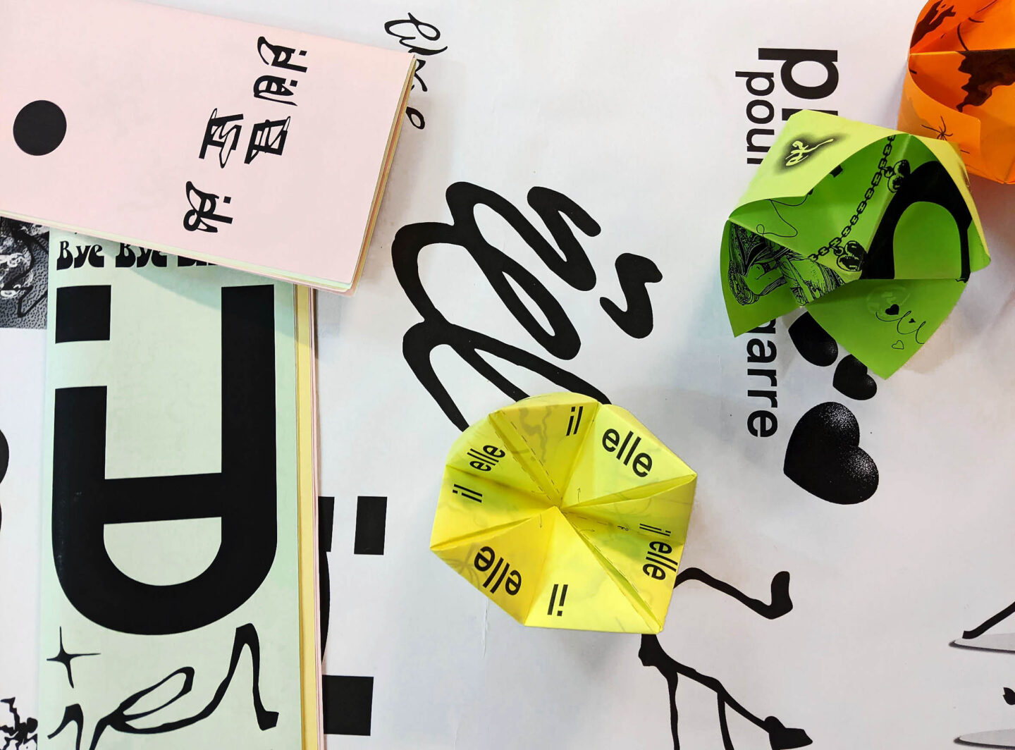 Bye Bye Binary (BBB) est une collective franco-belge, qui a comme terrain d’expérimentation et sujet de recherche le langage et l’écriture inclusive et non-binaire. Pour cet atelier, Léna Salabert-Triby vous propose d’explorer de nouvelles formes graphiques et typographiques adaptées à la langue française, notamment la création de glyphes (lettres, ligatures, points médians, éléments de liaison ou de symbiose) et de les imprimer sur papier carbone pour déposer à même la peau des slogans et des phrases manifestes.