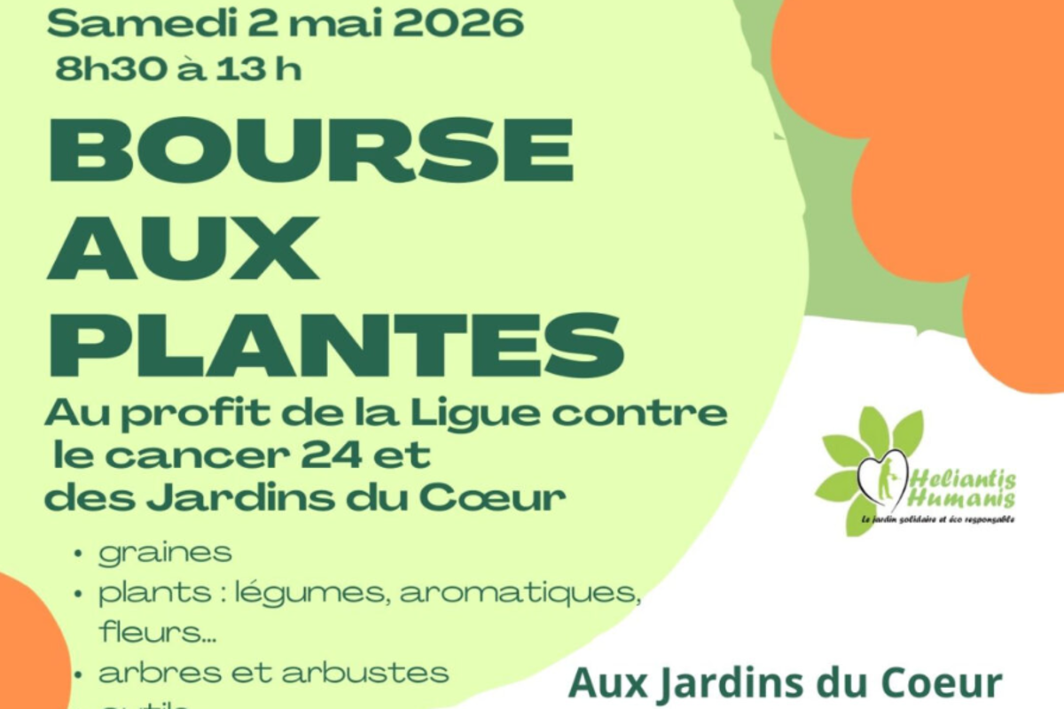 L’association Héliantis Humanis et l’antenne bergeracoise de la Ligue contre le cancer 24 organisent aux Jardins du Coeur à Bergerac une bourse aux plantes au bénéfice de la Ligue contre le cancer Dordogne, des Jardins du Coeur de Bergerac qui nous accueillent sur leur site .