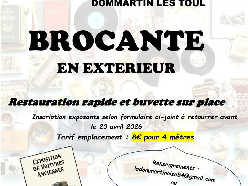 L’événement Brocante et exposition voiture ancienne Dommartin-lès-Toul a été mis à jour le 2026-03-02 par MT TERRES TOULOISES
