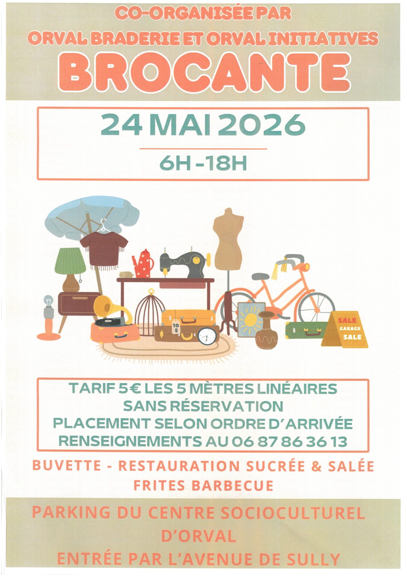 Placement selon ordre d’arrivée. Tarif 5€ les 5 m linéaires. Buvette restauration sucrée et salée, frites barbecue. Entrée par l’Avenue de Sully .