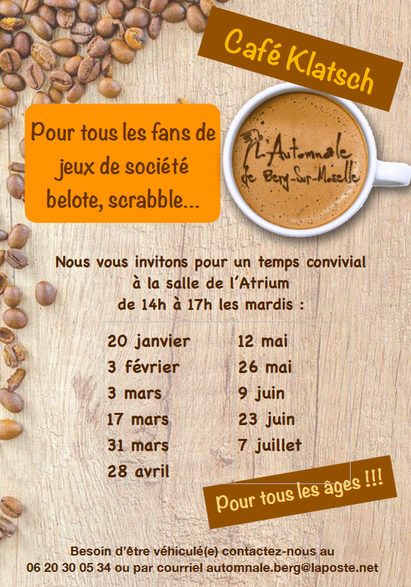 Café Klatsch Berg-sur-Moselle mardi 28 avril 2026.