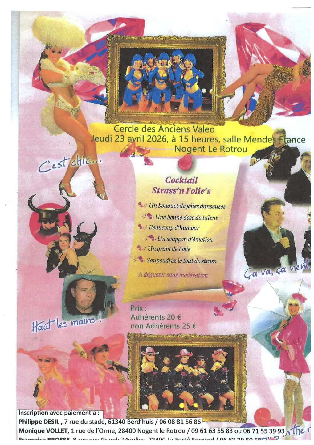 Le cercle des anciens de Valéo a le plaisir de vous proposer un spectacle plume, strass et paillettes dans la pure tradition du Music-Hall Cocktail Strass’n Folie’s –
