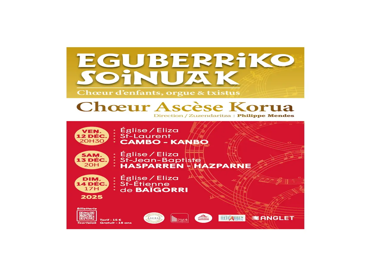 L’événement Concert du Choeur Ascèse Eguberriko Soinuak Hasparren a été mis à jour le 2025-11-18 par Office de Tourisme Pays Basque