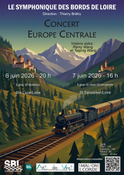 Le Symphonique des Bords de Loire avec un nouveau programme.Vous avez été nombreux à venir nous écouter lors de nos derniers concerts. Découvrez le programme et les premiers temps forts de 2026 !L’orchestre Symphonique des Bords de Loire est ravi de commencer cette nouvelle année, à Saint Sébastien sur Loire et dans toute la région Pays de la Loire. Nous sommes un orchestre soucieux de vous faire découvrir les plus belles musiques du répertoire. Au delà des grands classiques, notre chef d’orchestre Thierry Bréhu se remonte les manches pour vous dénicher des œuvres et des compositeurs loin des sentiers battus. Voilà l’objectif principal du Symphonique des Bords de Loire.Cette année, l’orchestre vous fait voyager en Europe Centrale : Martinu, Fucik, Dvorak et Fibich. Plongez dans cette musique caractéristique du XIXème siècle.Venez découvrir ou redécouvrir ces compositeurs lors de nos concerts du 6 et 7 Juin 2026.Taiping et Rémy Wang : cette année, le SBL s’arme de deux solistes internationaux, père et fils, pour vous proposer le double concerto pour violon de Bohuslav Martinu, compositeur tchécoslovaque né en 1890 (H.329, 1950).