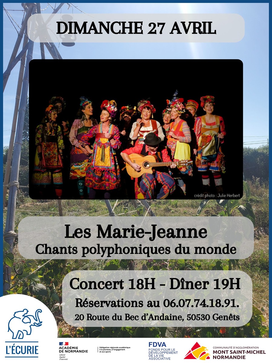 L’événement Concert Les Marie-Jeanne Genêts a été mis à jour le 2026-04-20 par OT MSM Normandie BIT Genêts