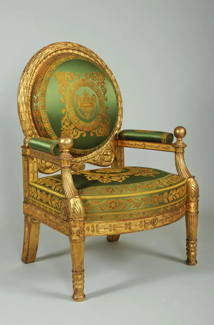 Pierre-Antoine Bellangé (1758-1827), Fauteuil du grand salon du roi de Rome au palais des Tuileries, 1813, bois sculpté doré, soierie, Paris, Mobilier national, cliché Isabelle Bideau, 2013.
