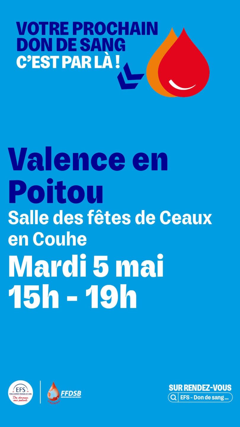 Don de sang Valence-en-Poitou mardi 5 mai 2026.