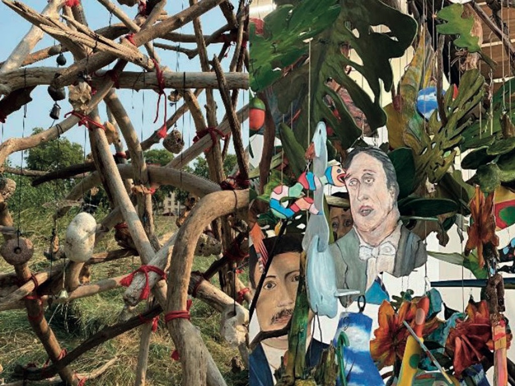 Au fil du faire — Ce concept correspond assez bien aux deux artistes. Daniel Gallego et Joël Thépault se connaissent depuis pas mal d’années lors de rencontres artistiques où ils ont pu œuvrer ensemble… Ils ont cette faculté de s’adapter aux lieux où ils installent leurs créations comme des mises en scène bricolées, mais exigeantes qui en appelleront d’autres…