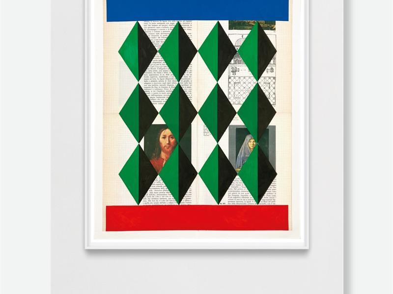 In 2024, Gianpaolo Pagni began a new series of works entitled Storia dell’arte Italiana, based on his own textbook on the history of Italian art by Giulio Carlo Argan, an emblematic work that has accompanied the education of generations of Italian students.The pages of this book, preserved since the artist’s student days, already bear the traces of past use: annotations, scribbles, underlining in pencil or highlighter, all of which constitute a first layer of memory and bear witness to the time devoted to learning. Thirty years later, the artist reactivates this object by intervening once again, affixing her stamped drawings. The book thus becomes the medium of a double temporality, where student memory and contemporary artistic practice are superimposed.