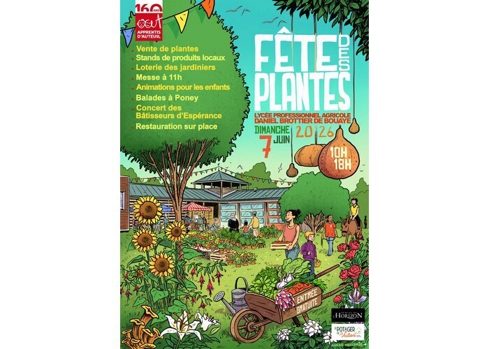 Le lycée agricole Daniel Brottier Apprentis d’Auteuil organise le dimanche 7 juin 2026 la 3e édition de la Fête des Plantes à Bouaye. Au programme, de 10h à 18h :- Venez à la rencontre de plus de 25 producteurs du territoire.- Vente de plantes : découvrez une large sélection de plantes d’intérieur, de fleurs, arbres et arbustes de jardin et de légumes.- Produits locaux : dégustez et offrez nos conserves, tisanes, miels, confitures et autres délices faits maison. (Pensez à apporter des paniers pour vos achats)- Visite des serres maraîchères : plongez dans l’univers de nos serres et de nos massifs jardiniers.- Restauration sur place : profitez de nos différents stands.- Animations pour enfants : des activités ludiques pour les plus jeunes.- Balades à poney : offrez à vos enfants une promenade inoubliable à dos de poney.- Loterie des jardiniers : tentez votre chance et remportez de superbes lots !