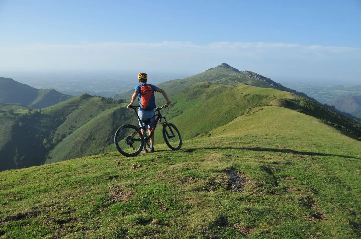 Sur les hauteurs d’Ainhoa et d’Espelette, ce circuit VTT à l’entame sportive présente tous les ingrédients du parcours VTT moderne typé all-mountain de belles ascensions sur pistes pastorales, une once de portage, des sentiers ludiques et panoramiques inoubliables sur le Gorospil un vrai régal !