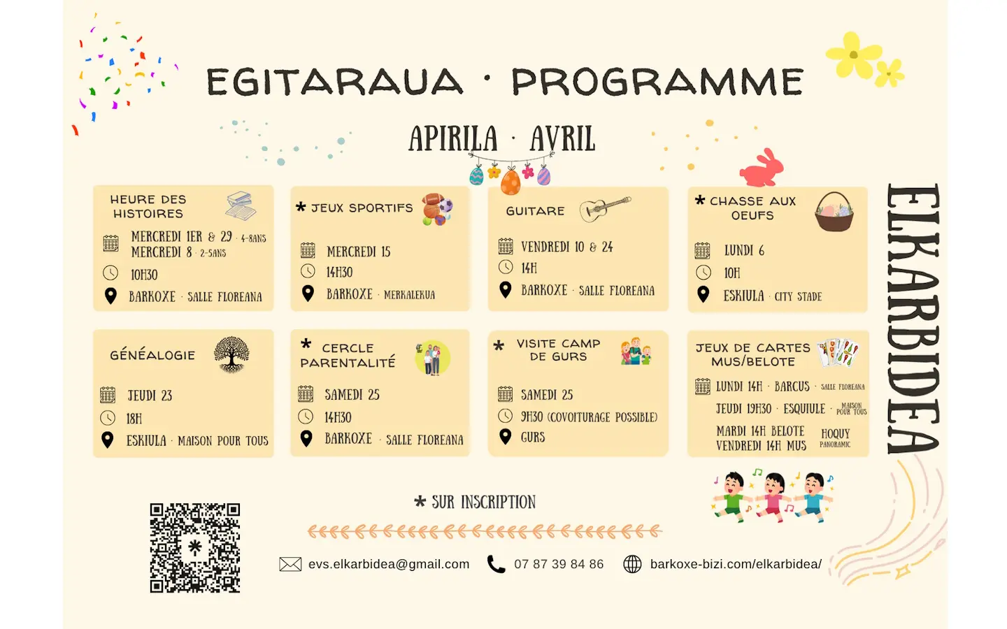 Plusieurs activités seront proposées. Goûter sur place. Sur inscriptions. .