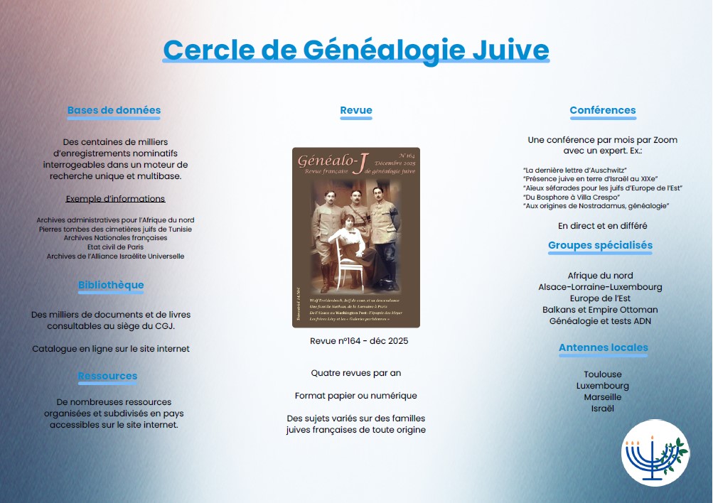 Venez rencontrer le Cercle de Généalogie Juive, et découvrir la revue Généalo-J.