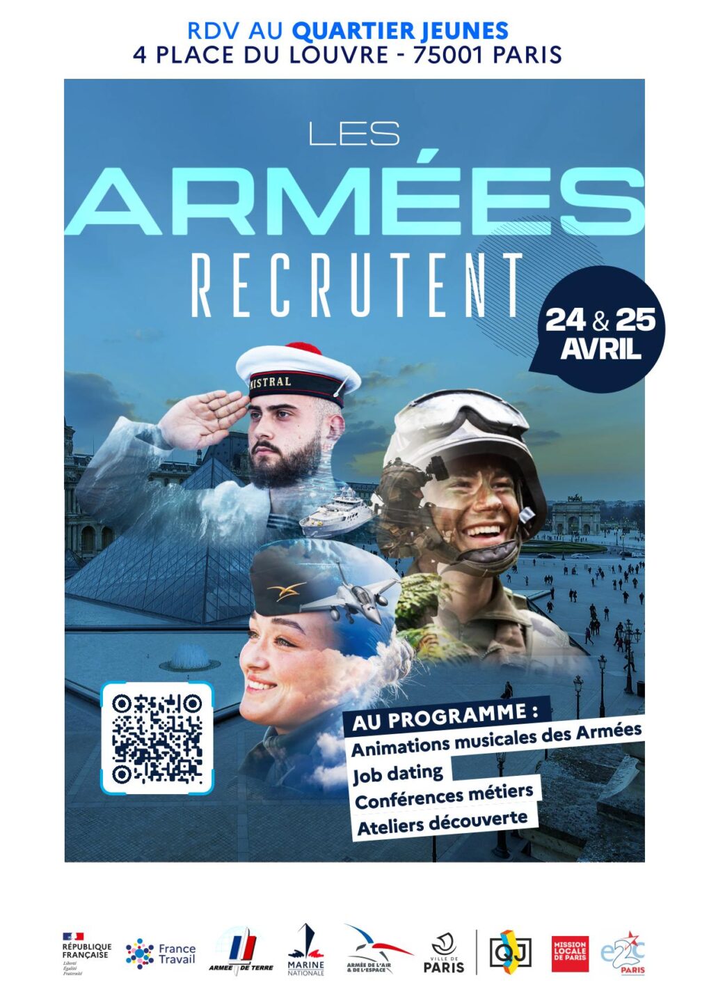 Les Armées recrutent à Paris QJ – Quartier Jeunes Paris vendredi 24 avril 2026.