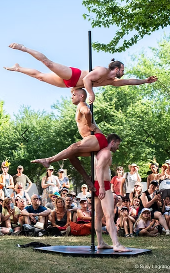 Une scène, trois corps, un nouvel équilibre. Entre envol et chute,“Les Coeurs Rouges” dessine une masculinité en mouvement, loin des clichés. Une performance de pole dance qui joue avec la gravité autant qu’avec les frontières du genre. Carna fait voler en éclat les stéréotypes d’une discipline longtemps associée à un imaginaire érotique et réservée à un usage féminin. Quand trois hommes s’en emparent, qu’est-ce que cela produit ? La masculinité en est-elle questionnée ?