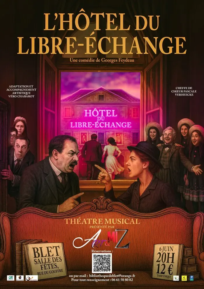 L’association Les Amis de la bibliothèque de Blet est heureuse de vous présenter la Compagnie Art&Miz et son nouveau spectacle : Adaptation de l’Œuvre de Feydeau : Hôtel du Libre-Échange en théâtre chanté