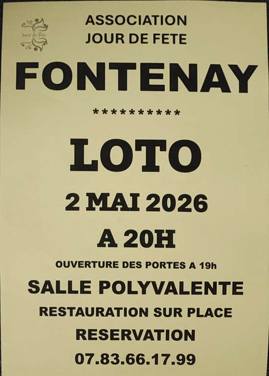 Loto Fontenay-sur-Loing samedi 2 mai 2026.
