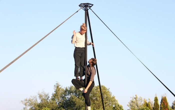 Au coeur d’une mise en scène épurée, nous sommes invités à revenir au corps, à la technique mais surtout, à assister à un exploit collectif entre espace, ascension et maîtrise de la chute.