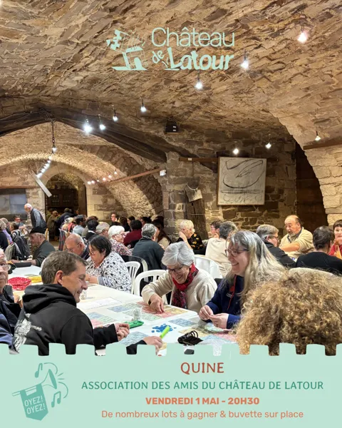 Vous êtes invités à participer au traditionnel Quine de l’Association des Amis du Château de Latour pour tenter de remporter de superbes lots !