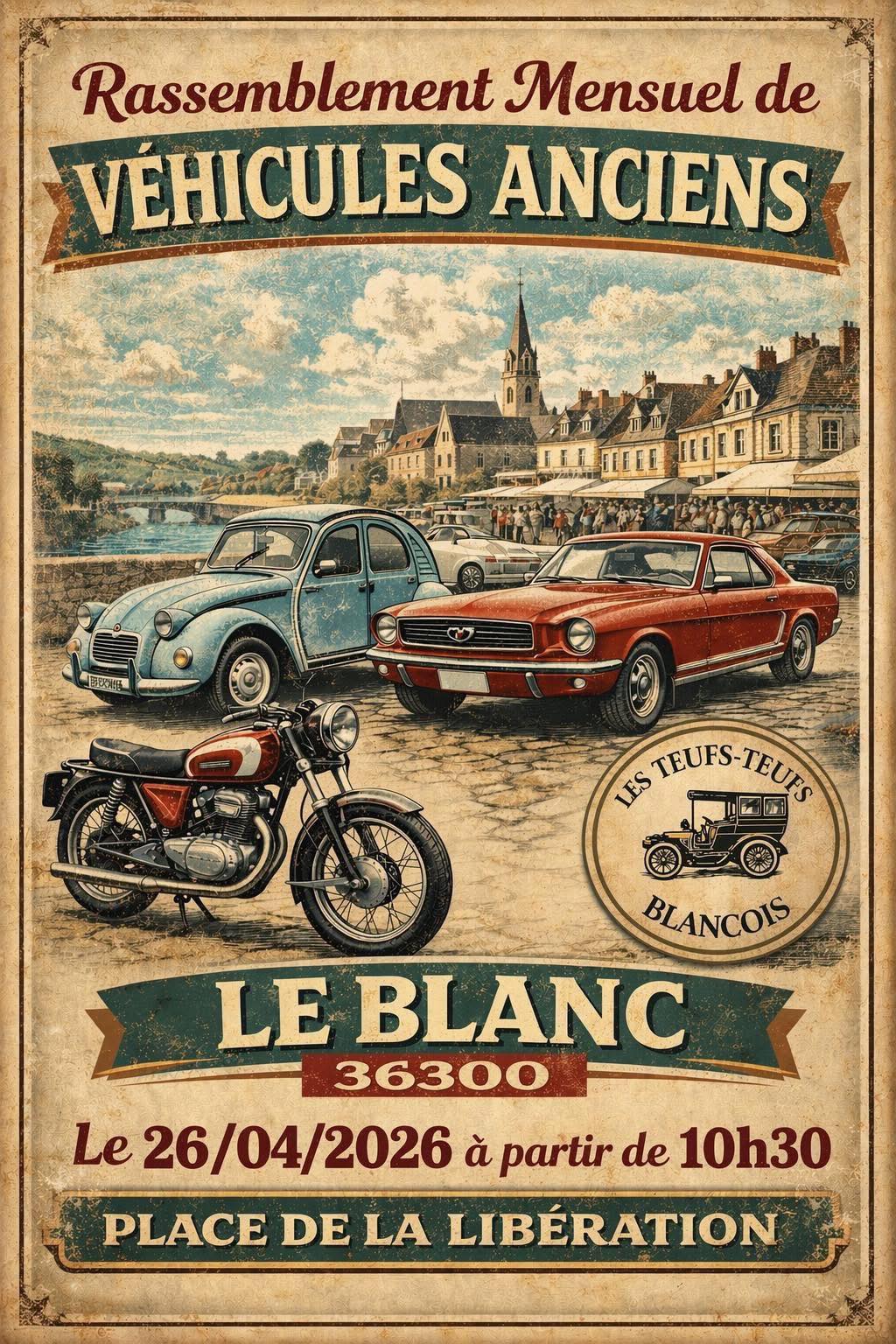 Ressemblement véhicules anciens Le Blanc dimanche 26 avril 2026.