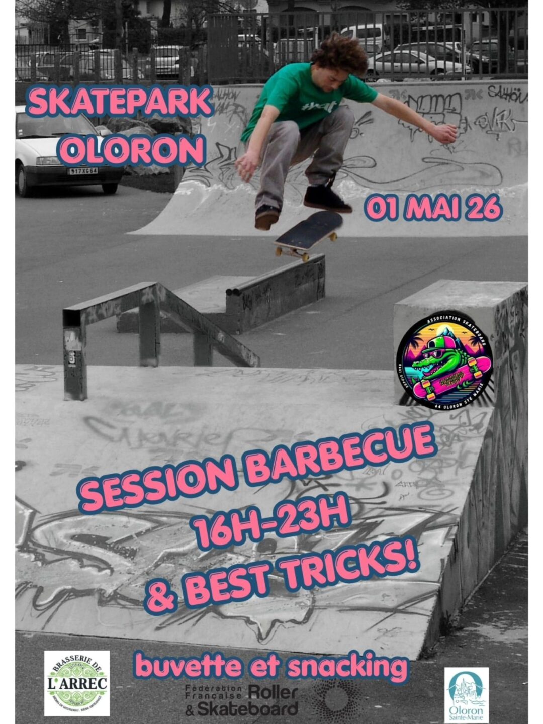 Session Skate Barbecue Skatepark Oloron-Sainte-Marie vendredi 1 mai 2026.