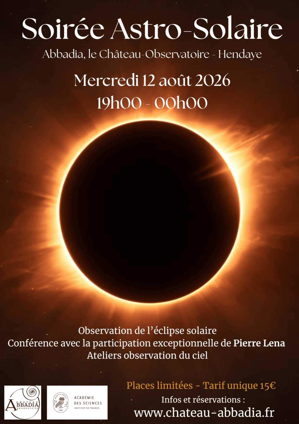 • 21h15 22h15 Conférence Pierre Léna Soleils éclipsés. Ulysse, couronne, Concorde 001 et exoplanètes . Si contre temps conférence de Frédéric Soulu A la poursuite des éclipses avec Antoine d’Abbadie