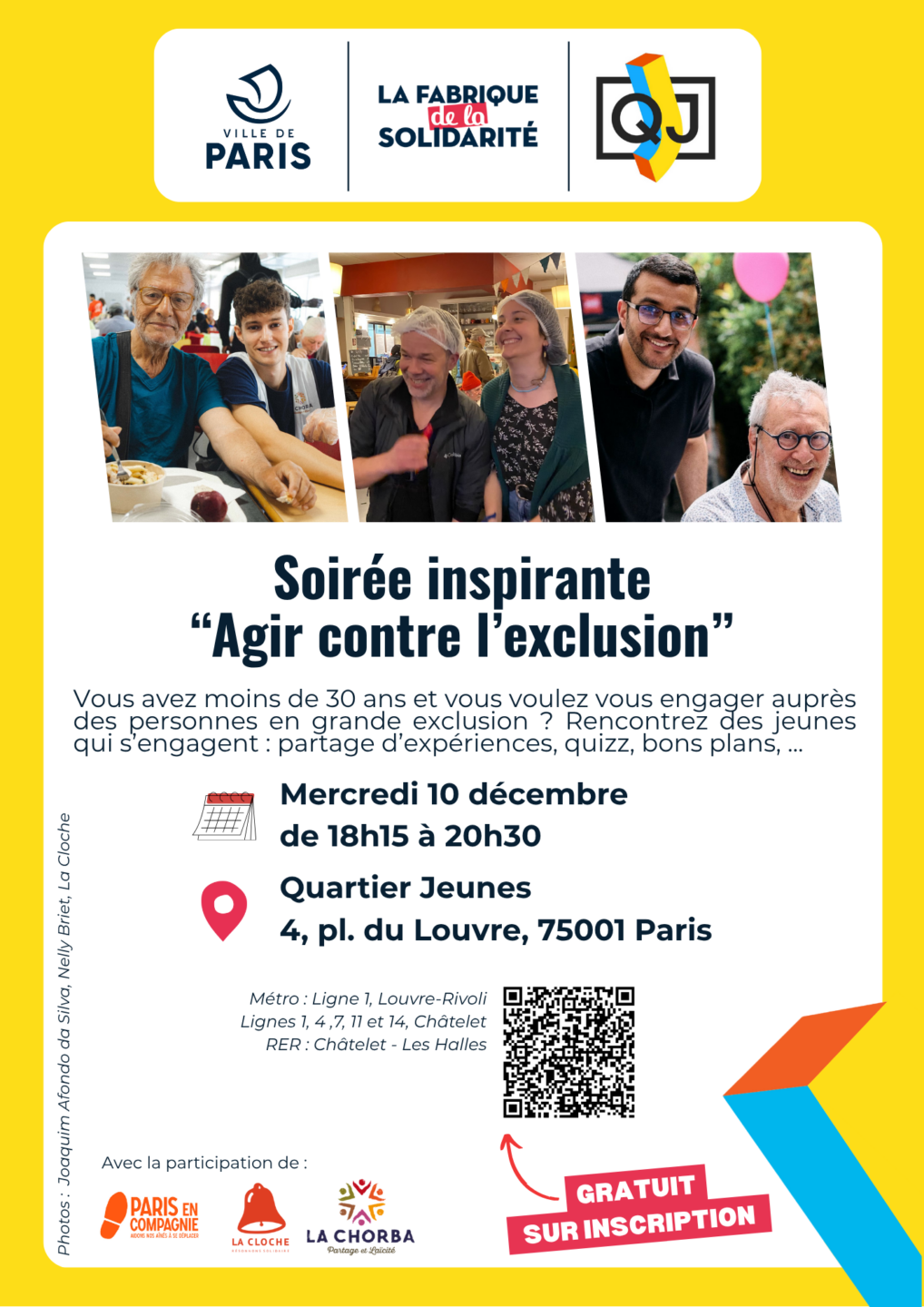 Soirée inspirante « Agir contre l’exclusion » à Quartier Jeunes QJ – Quartier Jeunes Paris mercredi 10 décembre 2025.