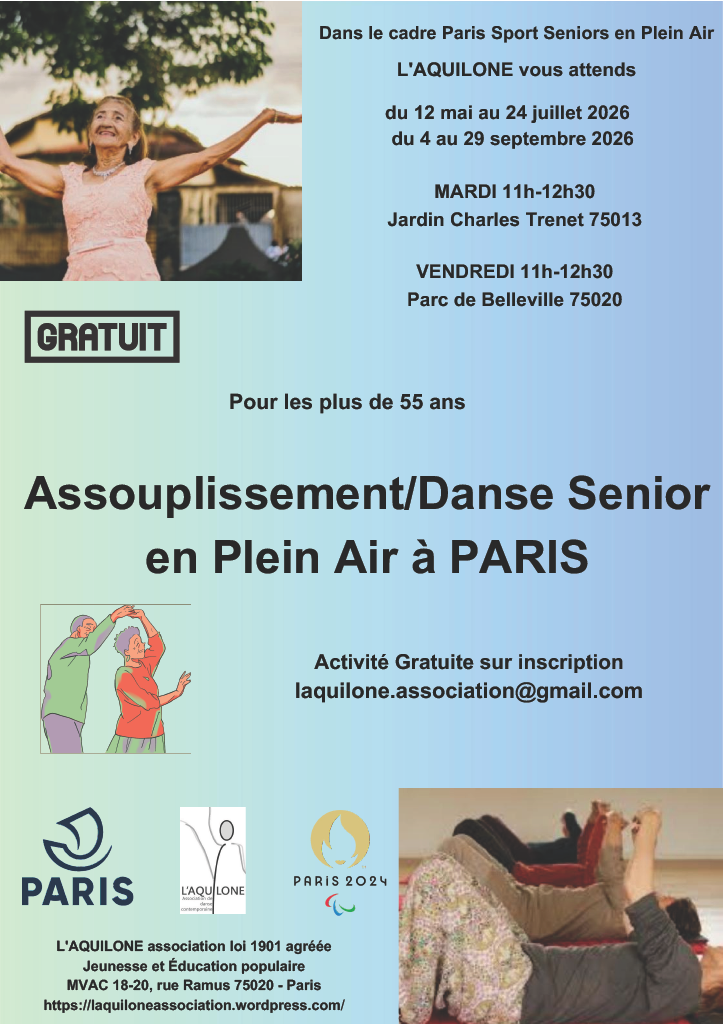 Une séance alliant gym douce et danse, proposée par L’Aquilone, pour entretenir sa souplesse et son bien-être tout en profitant d’un moment convivial en plein air.
