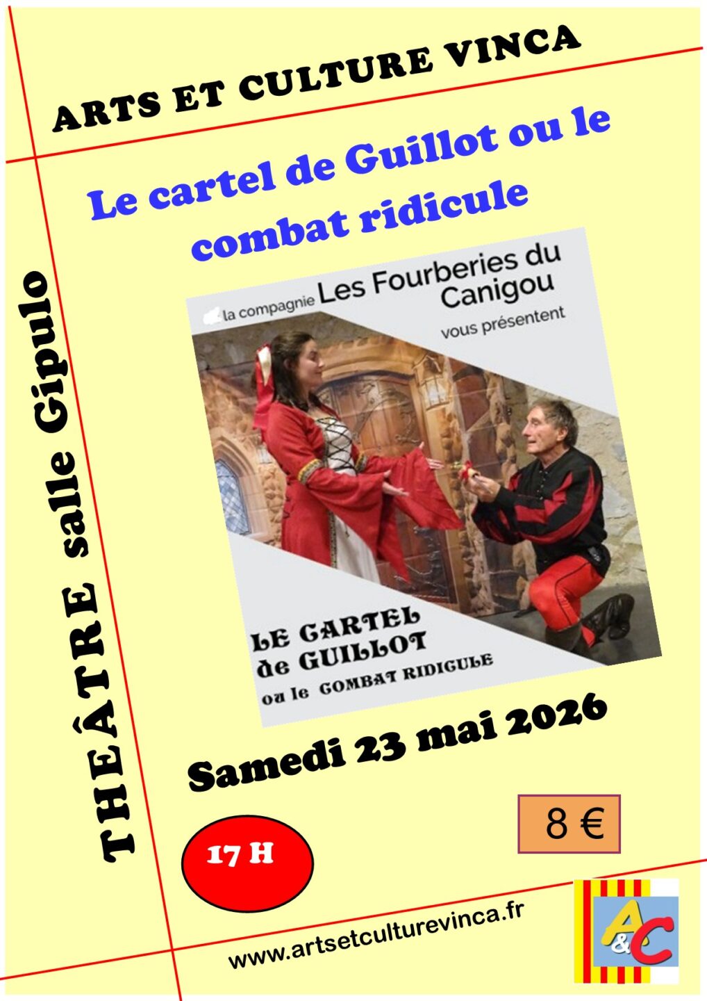Arts et Culture à Vinça will present Le cartel de Guillot ou le combat ridicule on Saturday May 23 at 5pm at the Salle Gipulo in Vinça, by the troupe Les Fourberies du Canigou.
