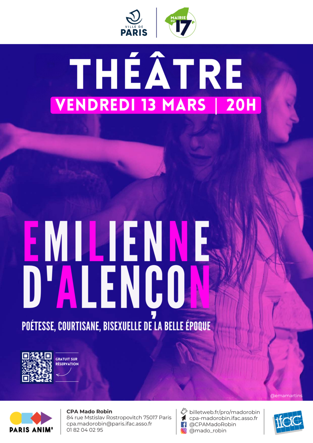 Théâtre | Emilienne d’Alençon Centre Paris Anim’ Mado Robin Paris vendredi 13 mars 2026.