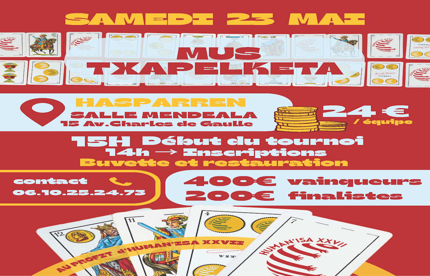 Tournoi de mus Salle Mendeala Hasparren samedi 23 mai 2026.