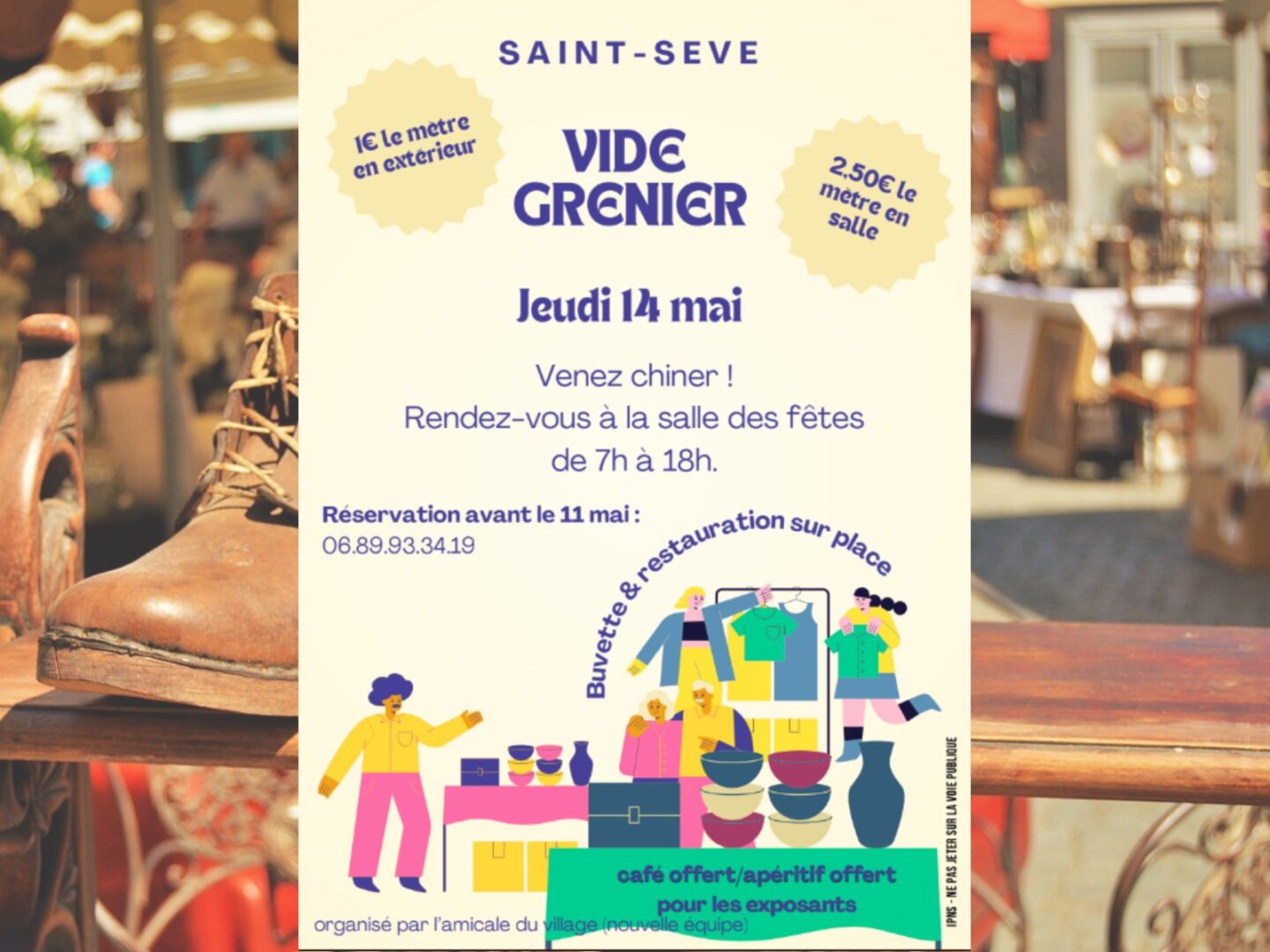 Vide grenier à la salle des fêtes le 14 Mai toute la journée, restauration et boissons sur place. .